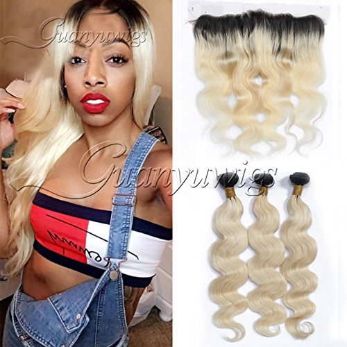 Guanyuwigs 13x4 Lace Frontal With Bundles Ombre 1b 613 Blonde Brazilian Body Wave Virgin Human Hair With Full Frontal Lace Closure 14 16 18 20 Amazon In Beauty