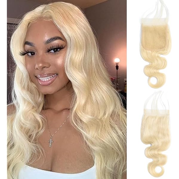 613 Blonde Bundles With Closure 613 Platinum Blonde Human Hair 3 Bundles With Transparent Color Lace Closure 4x4 Brazlian Straight Remy Hair Extension Can Be Dyed 182022 14inch Bundles With Closure